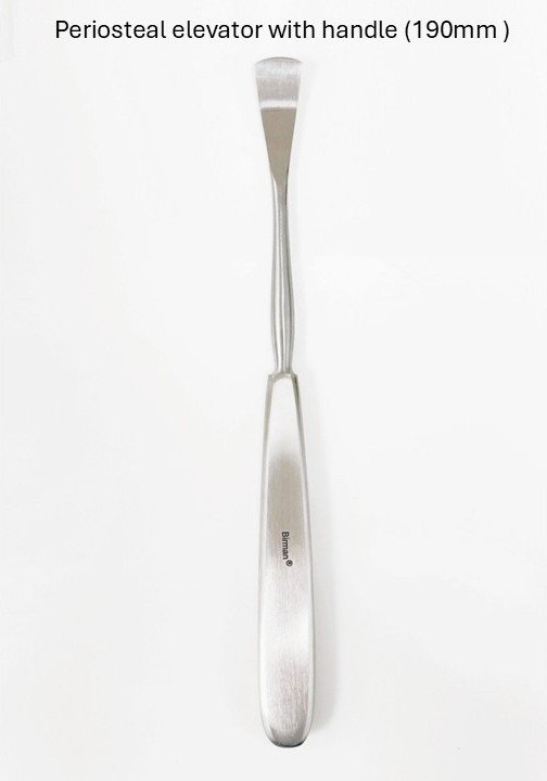 - Periosteal elevator with handle, square tip 195mm