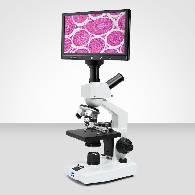 This integrated biological microscope features an achromatic objective lens, a wide-angle eyepiece, and a camera integrated display screen. Its optical system provides clear imaging and a wide field of view, making it an ideal instrument for medical, teaching, and research institutions with wide applicability in fields such as biology, medicine, industry, and agriculture.